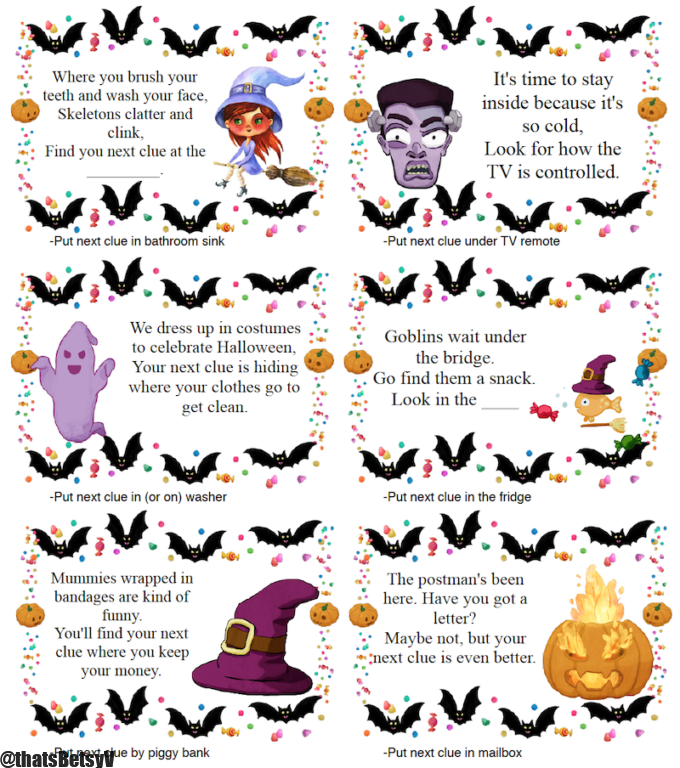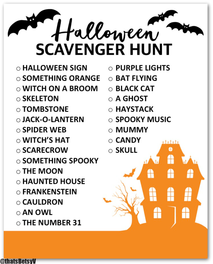 2. Something we are definitely doing is printing out some fun scavenger hunt sheets where we plan to dress up in our costumes and check off what we see. Once we get home there will be another scavenger hunt with clues on where the kids can find their trick-or-treat bags! Those will be listed below for you to save!