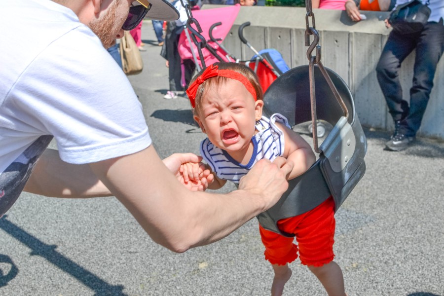 You know for a kid who loves being thrown in the air and all it makes no sense that she would hate the swing–