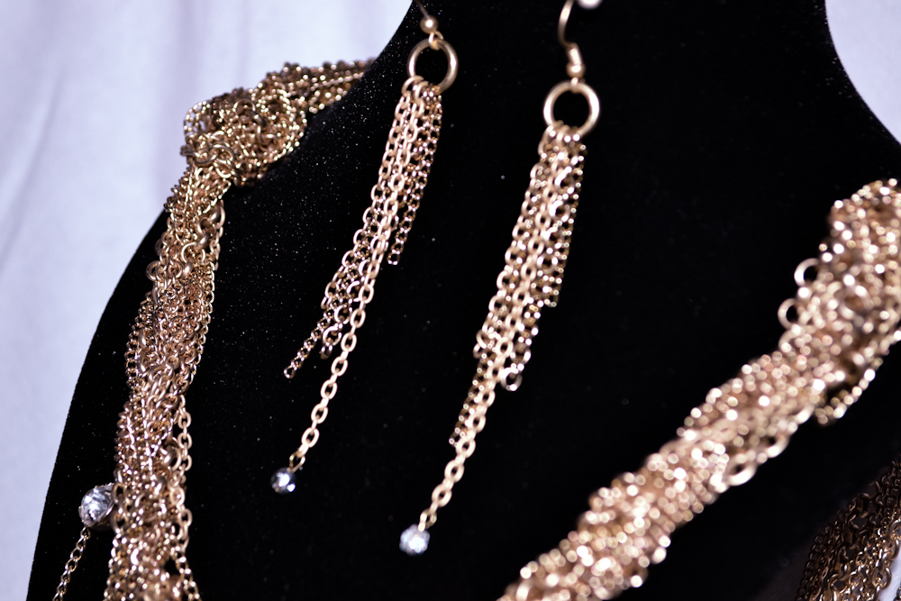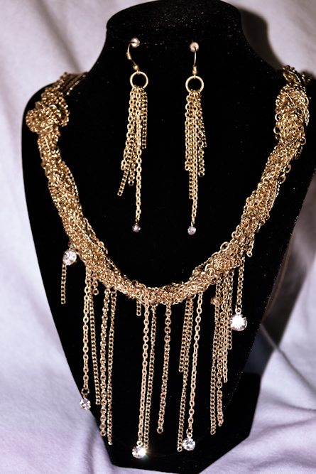 Fantasy Gold with few diamond pieces attached. 17 inches long.
