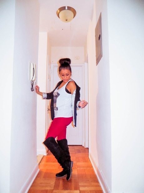 Now remember how last week I stated that bring your Summer clothing into Winter was very in? Well I did just that adding over the knee boots which made my outfit very fall like.