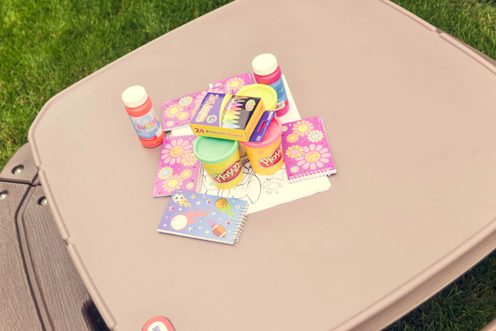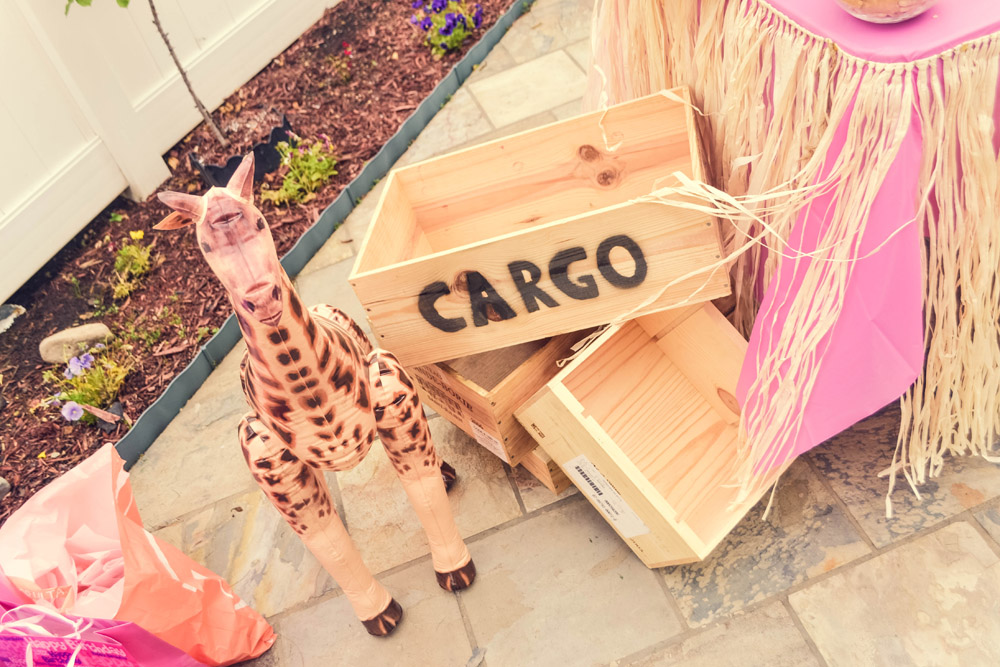 I googled safari coloring pages and had the hubby print them out at work. Bought crayons at 99cent store, bubbles and note pads purchased at Party City and play-dough at Toys R’ Us.