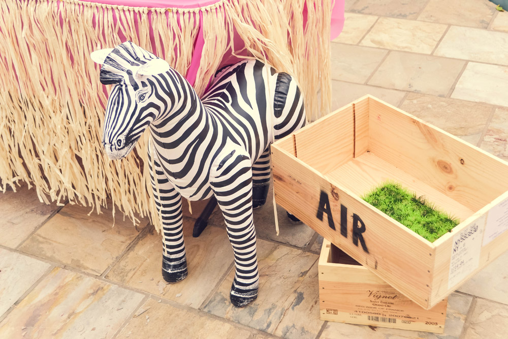 The inflatable zebra and giraffe were purchased at Shindigz.