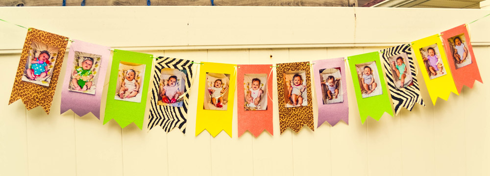 I decided to make a 12-month banner of Ziana from when she was a newborn up until her 11th month all taken on the same rocker chair. The banner paper is actually scrap-book paper purchased from Michael’s.