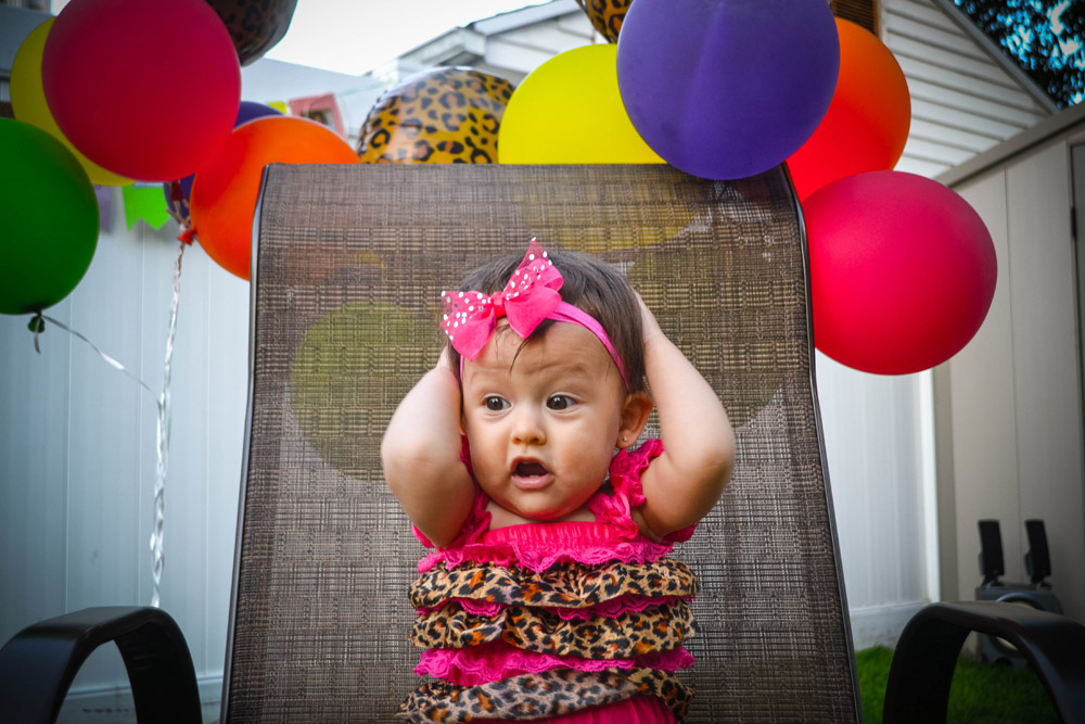 The main decor was cheetah– cheetah balloons (not too much just right), Ziana’s outfit was cheetah, I had a cheetah belt and necklace and her daddy had cheetah print on the letters of his shirt.